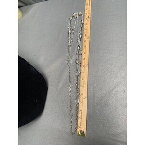 Silver-Tone Beaded Multi-Strand Necklace with Chain & Textured Beads 36"