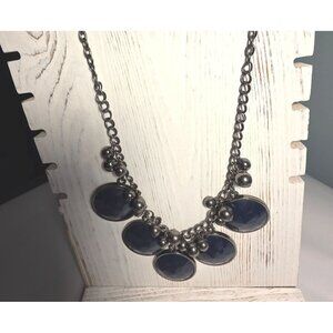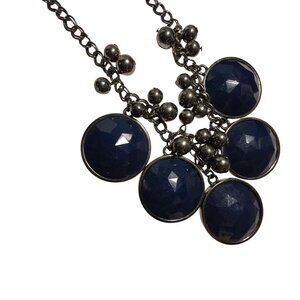 Silver-Tone Chain Necklace Blue Faceted Pendants reversible statement indigo