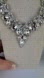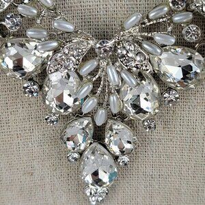 Silver-Tone Clear Crystal White Pearl Statement Bib Necklace 19.5 in Art Deco