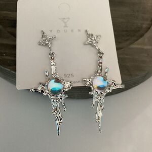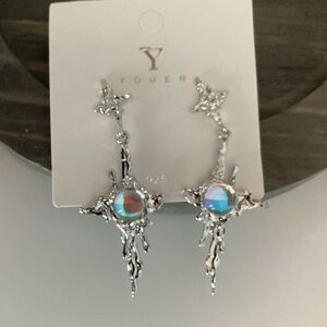 ⭐️SilverTone Cross Melting Moonstone Post back Earrrings.
