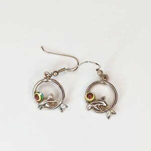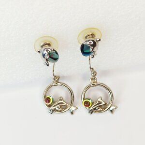 Silver-Tone Dolphin Earrings Set With Abalone Rainbow Stone Accents