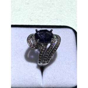Silver-Tone Faux Amethyst & Crystal Accent Swirl Cocktail Ring Size 10 Elegant S