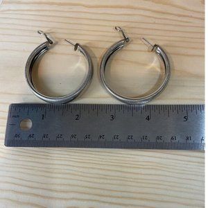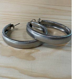 Silver-Tone Metal Hoop Earrings Ribbed Texture Design Simple Versatile Style