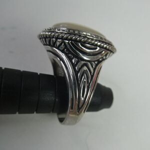 Silver Tone Mother of Pearl Oval Cabochon Chunky Ring Size 7 3/4 Vintage Style