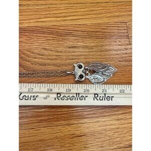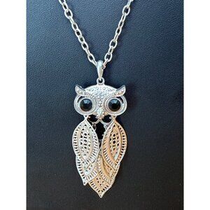 Silver-Tone Owl Pendant Necklace With Chain Link & Lobster Clasp