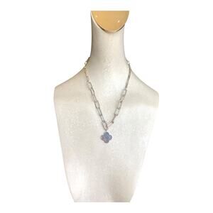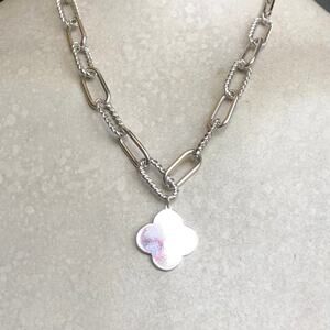 Silver-Tone Paperclip Chain Necklace Quatrefoil Clover Pendant Lobster Clasp