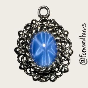 Silver-Tone Pendant with Blue Cabochon Sapphire Glass Center (2 of 2)