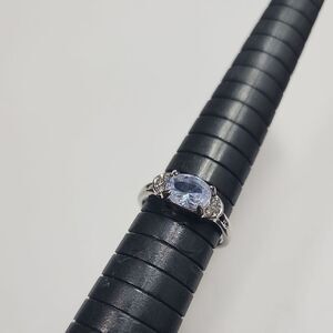 This elegant ring features a stunning center set in a sleek silver tone band. Perfect for adding a touch of sophistication to any outfit.