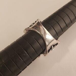 Elegant ring with a vibrant green center set in a silver tone band. Perfect for adding a touch of color to any outfit.