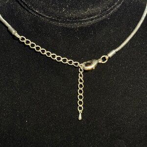 This elegant silver-tone snake chain necklace adds a touch of sophistication to any outfit, offering a sleek and modern design.