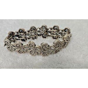Silver-Tone Stretch Bracelet Fits average Wrist Art Deco Style Intricate Swirl