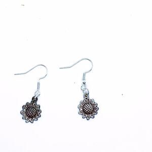 Silver tone chain & pendants. Sunflower pendants. Lobster clasp closure – Dangle style earrings
