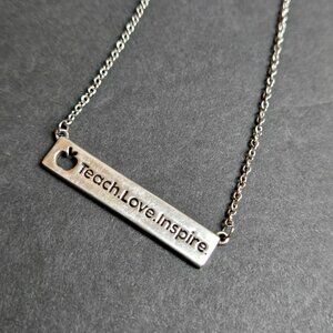 Silver-Tone Teacher Gift Necklace Inspirational Bar Pendant Teach Love Inspire