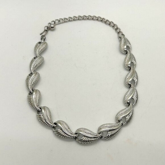 This vintage Best Product silver-tone necklace features an intricate leaf design with a polished finish. Adjustable chain and hook closure ensure a refined fit.