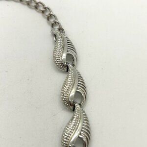 Silver-Tone Vintage Necklace Leaf Design & Hook Closure Adjustable Chain Elegant