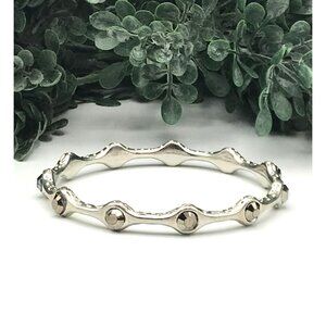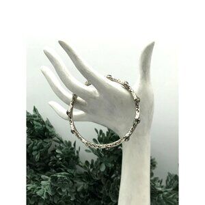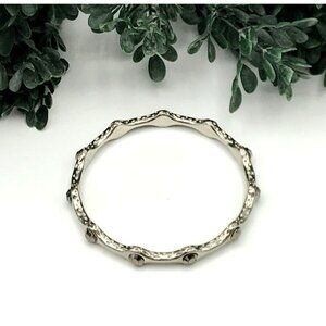 Silver-Tone Wavy Bangle Bracelet With Faceted Gemstone Accents hammered finish