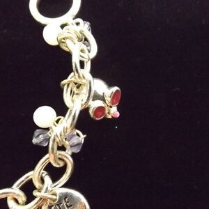 Silver Tone Cat and Mouse Pastel Bead AJMC Charm Bracelet Large Lobster Claw Clasp Excellent Condition 7"
