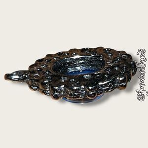 - Material: Silver-tone metal with blue cabochon sapphire glass