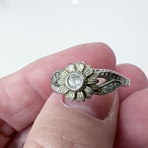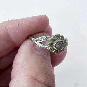 Silver Tone Sunflower Band Ring