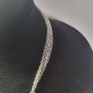 Silver-Toned Lia Sophia Multi-Strand Necklace With Circular Textured Pendant