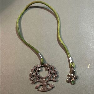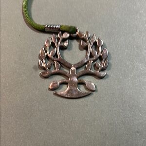 Elegant silver Tree of Life pendant bookmark with a green cord. Perfect for adding a touch of nature-inspired beauty to any book. G258