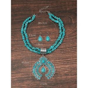 Silver Turquoise Western Squash Blossom Necklace & Earring Set