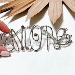 Amore choker necklace earrings in silver tone