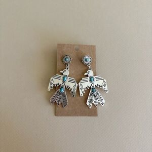 Elegant silver earrings featuring a striking turquoise accent, perfect for adding a touch of sophistication to any outfit.
