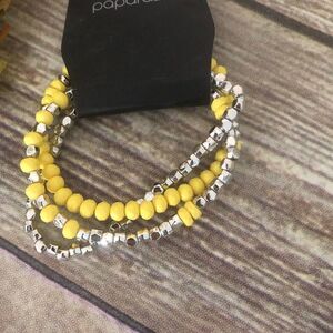 Smoke and pet free home Never worn Silver and yellow bead triple layer stretch bracelet.