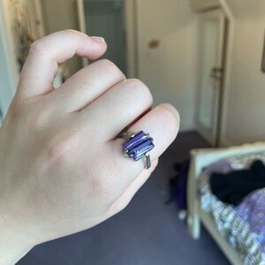 Pretty silver colored ring with a purple stone. The ring is about a size 7-8. There is a bit of wear on the ring but when you put it on it’s not visible at all. Message me for any questions 🌸❤️❤️❤️🌸