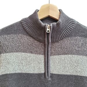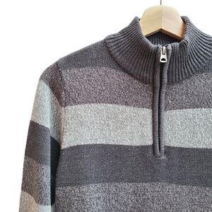 Silverlake Striped 1/4 Zip Knit Sweater in Gray, Size L