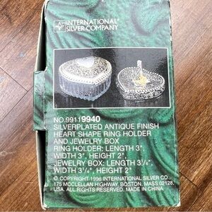 Silverplated Jewelry Box & Ring Holder Heart Shaped NIB International Silver Co.