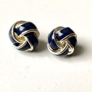 Silver plated Knotted Stud Earrings, Sterling silver with blue enamel, very cute with blue and silver