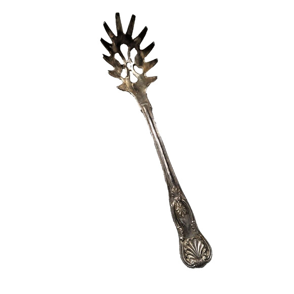 Silverplated Rogers Pasta Spaghetti Serving Spoon 11" Italy Spike Shell