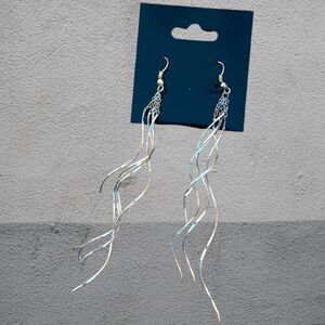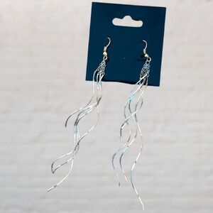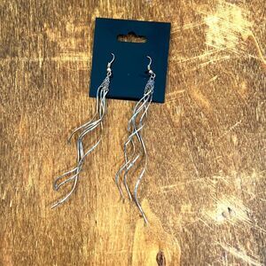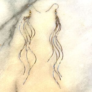 Silver plate multi spiral modern simplicity dangle earrings. These gorgeous silver wire earrings hang from hypoallergenic hooks. They have 5 different length spirals with the longest being approximately 4”. These are a great accessory for any outfit but look especially hot with something really sleek and clean lined. These date sometime in the early 2000’s