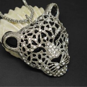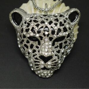 Silver-plated Leopard Head Crystal Pendant NWOT