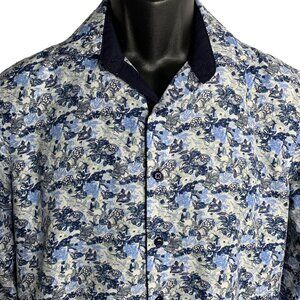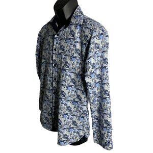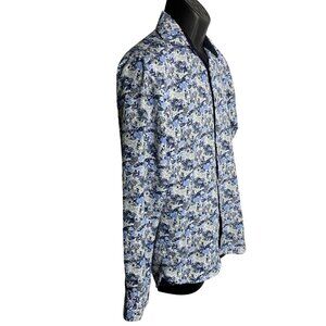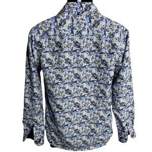 Silverstone Button Up Long Sleeves Shirt S Blue Floral Collared Modern Fit