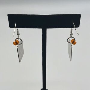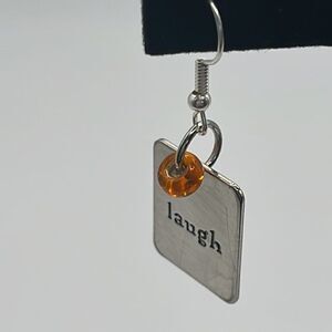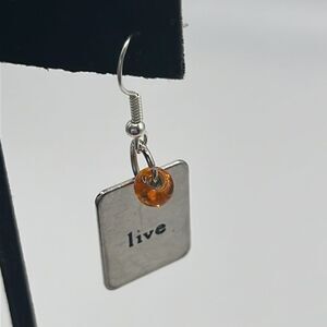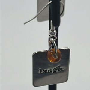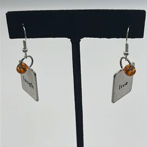 Silver-tone 1.5-in Dangling Orange Bead and Laugh Live Charm Earrings