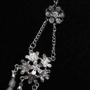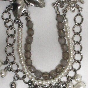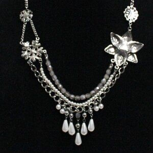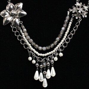 Silvertone 21 Inch Imitation Pearl Rhinestone Smoky Bead Multi Strand Necklace