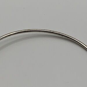 Pre-owned silver-tone bangle with faceted rhinestone charm. The rhinestone itself is sticking out of its metallic base, so it may not be 100% secure. Also has some tarnishing on the metallic base and the bangle itself.