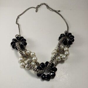 Elevate your style with this chic silver-tone necklace featuring distinctive hoops design adorned with black and off-white beads. The contrasting colors and unique hoop arrangement make this necklace a fashionable statement piece. The necklace is marked "NY," adding a touch of urban flair to the overall design. With a length of 20 inches and an additional 3-inch extension, it provides versatility in adjusting the fit according to your preference. NWOT