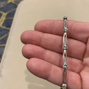 Silvertone Bracelet w/ Small Rhinestones Separated by Oval Shapes Excellent