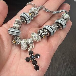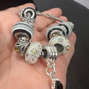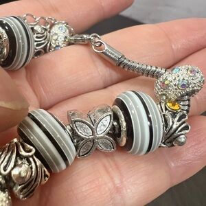 It has pandora like beads 4 of them a murano glass and sterling silver