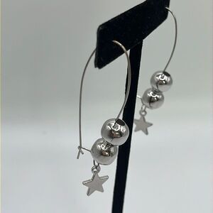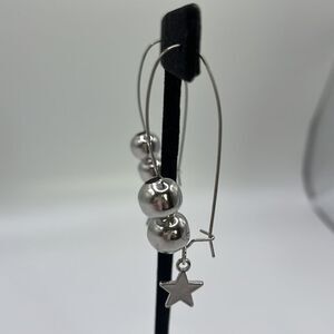 Silver-tone Dangle Drop Wire Earrings Silver Beads and Star Charm