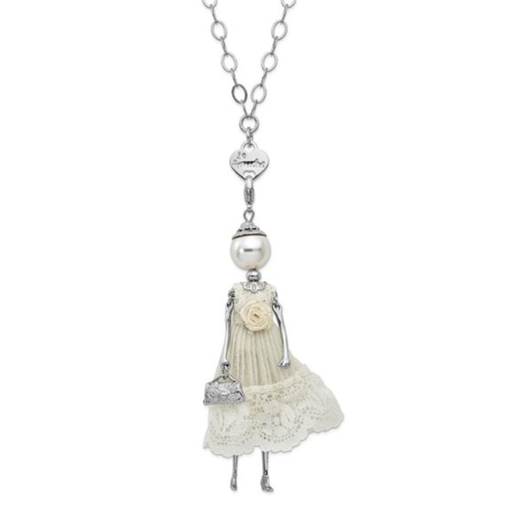 Le Amiche Silver-tone Swar Sim.Pearl White Lace Doll Charm with Chain