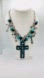 Silvertone Faux Turquoise Cross Necklace Boho Dangles Statement Coastal Cowgirl
