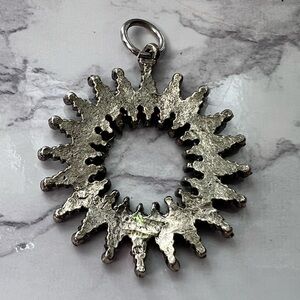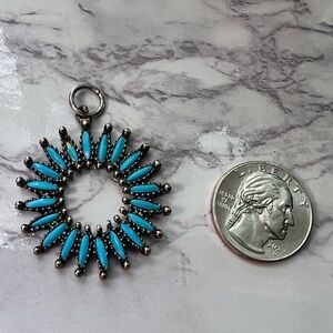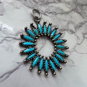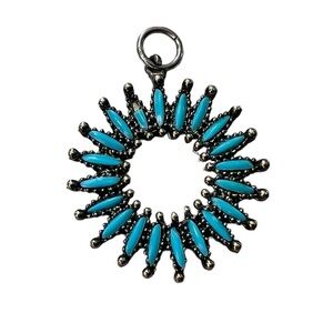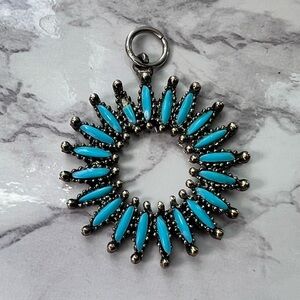 Silvertone Faux Turquoise Sunburst Western Boho Pendant Damaged
