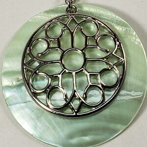 Embrace the beauty of the ocean with this elegant Silver-tone filigree seashell circle design pendant necklace. Perfect for women, this intricate piece combines a delicate filigree pattern with a charming seashell motif, offering a sophisticated and stylish accessory for any occasion. NWT