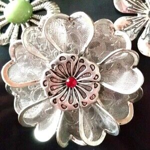 Silvertone Flowers Floral Necklace 19" adjustable Fashion Jewelry Studded Boho