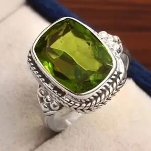 Silvertone Green Gemstone Ring